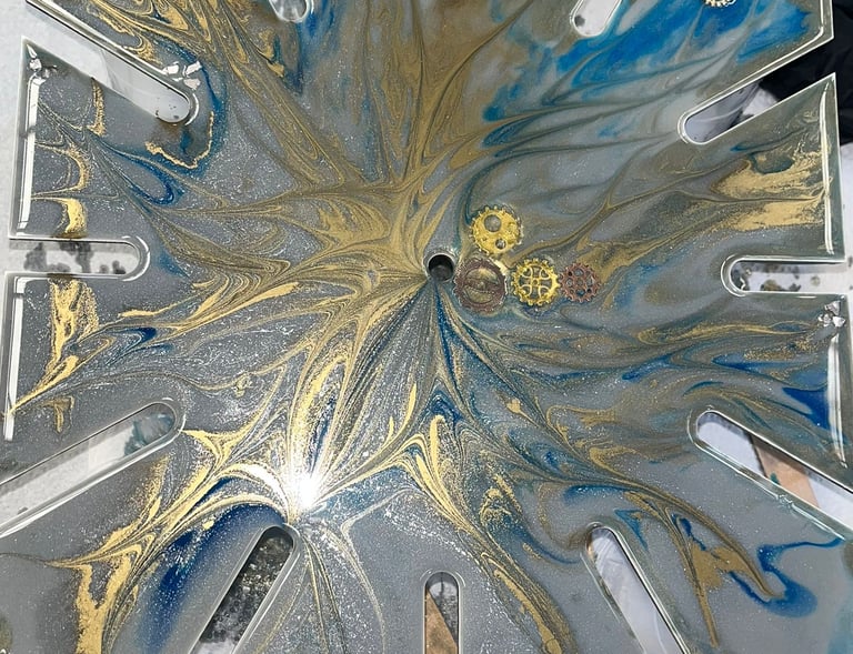 Diseños únicos con resina y madera natural.